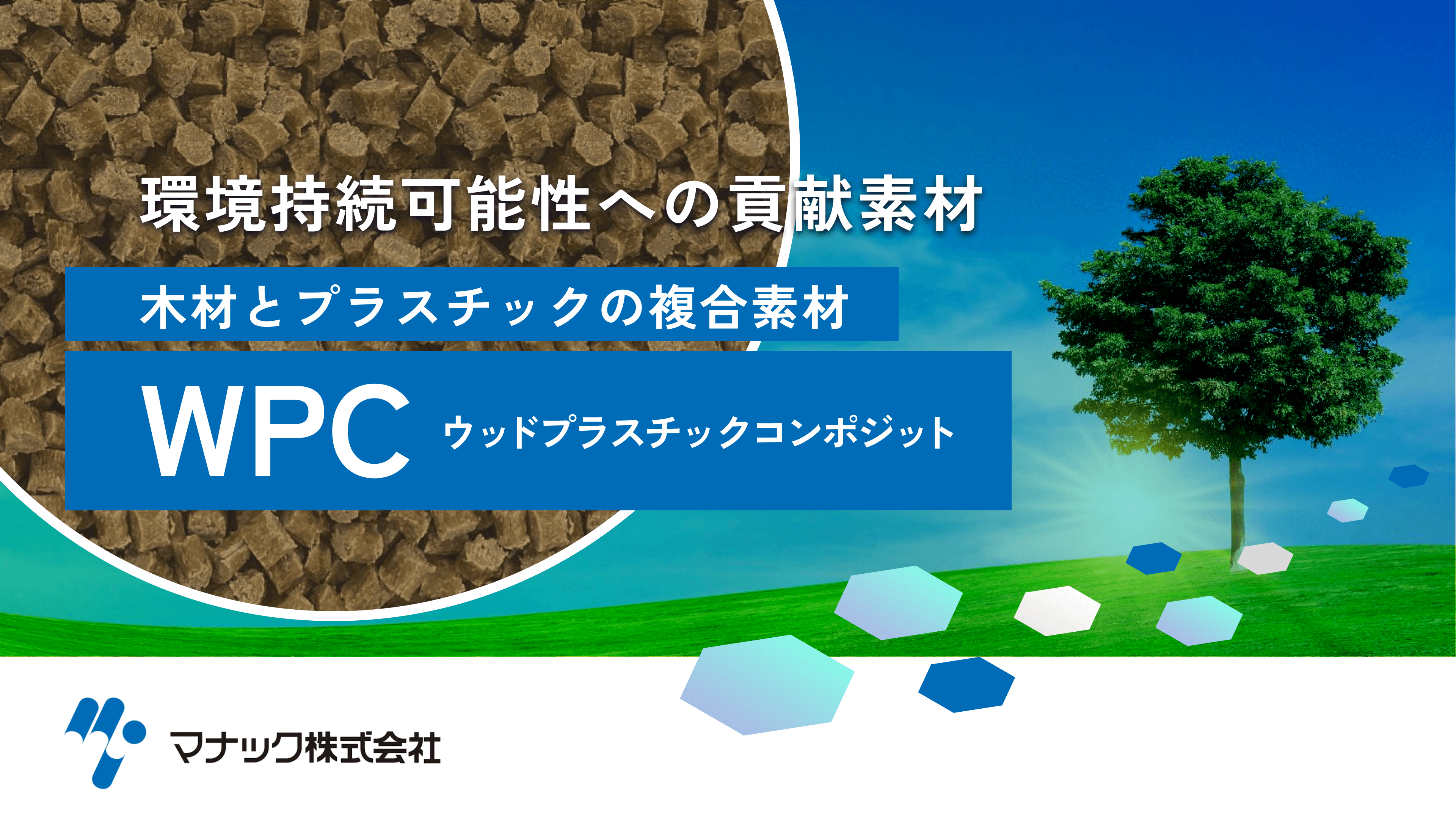 ウッドプラスチックコンポジット(WPC)は、木材とプラスチックの融合により生成される複合素材です。マナック株式会社では、意匠性・耐衝撃性・難燃性などの特長を持つ各種グレードのWPCを提供しています。