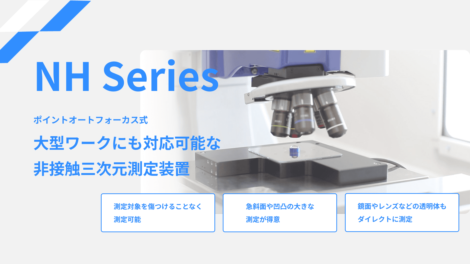 完全非接触のポイントオートフォーカスプローブと高精度の5軸ステージとの組み合わせにより、 あらゆるワークの全周サブμm 形状測定が可能。非接触測定の常識を覆すポイントオートフォーカス測定 です。
